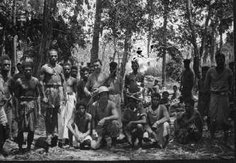 Ted Kaczor (kneeling) and Max Kulich (standing behind Kaczor) with natives of Lae, New Guinea |
