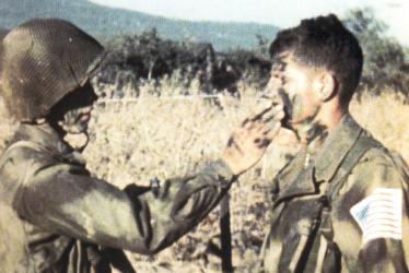 Men of the 517th apply camouflage before the Invasion of Southern France, August 1944.