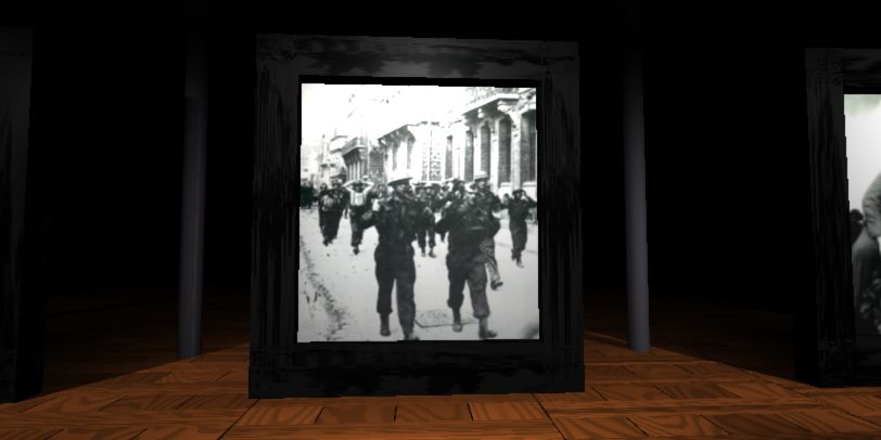 Use the forward arrow to walk through the Time Portal and use the twist arrows to turn to the photos.