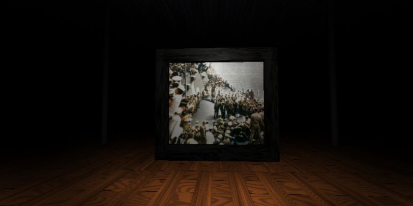 Use the forward arrow to walk through the Time Portal and use the twist arrows to turn to the photos.