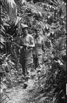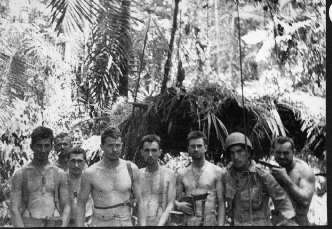 Ted Kaczor (kneeling) and Max Kulich (standing behind Kaczor) with natives of Lae, New Guinea |