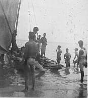 | Bob Hill of NYC (at left, back to camera) with New Guineans | |