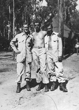 | Brisbane, Australia - Spring '44 Junior Malo (Chicago) Jack Herzig (NJ) Bill Pendergast (Buffalo), wounded at Paluan, evacuated by PT boat |