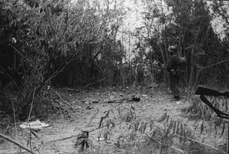 | Jack Herzig (Teaneck, NJ), on patrol. | Dead Japanese Soldier |