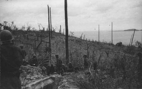 | 3rd Battalion moving through remnants of 1st Battalion after Monkey Point explosion. |